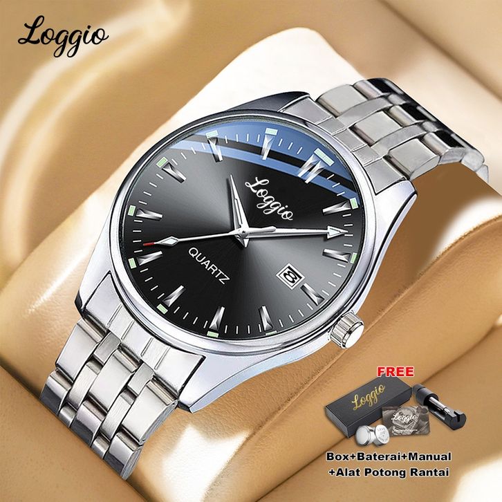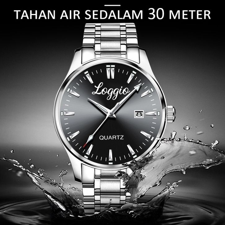 TERMURAH Loggio Jam Tangan Pria Anti Air Original 100% Bisnis Fashion Mewah Stainless Steel Quartz Watch idisr