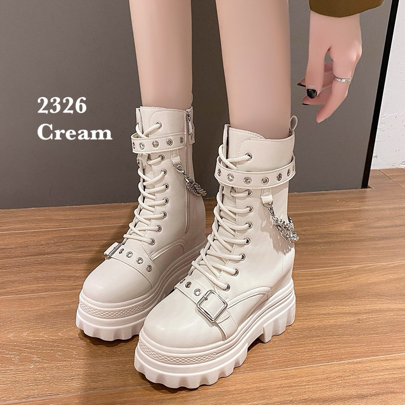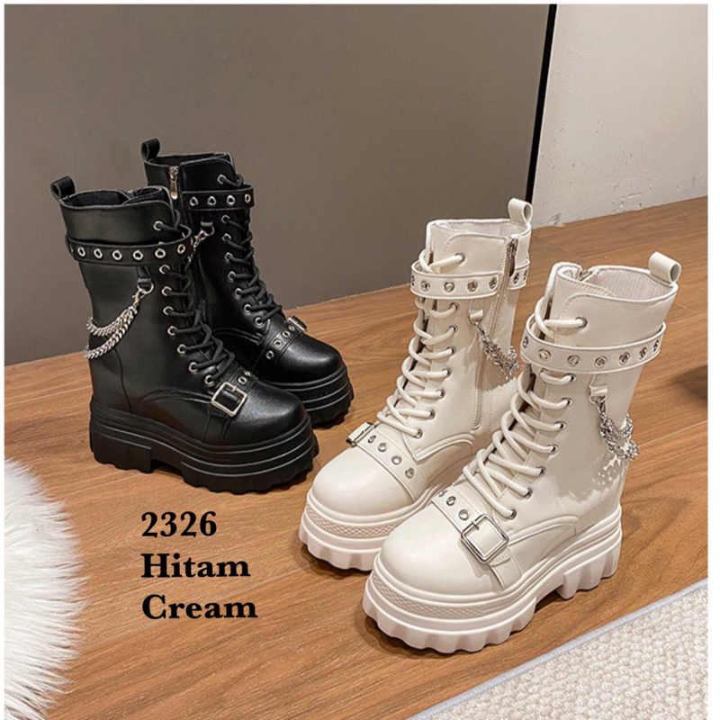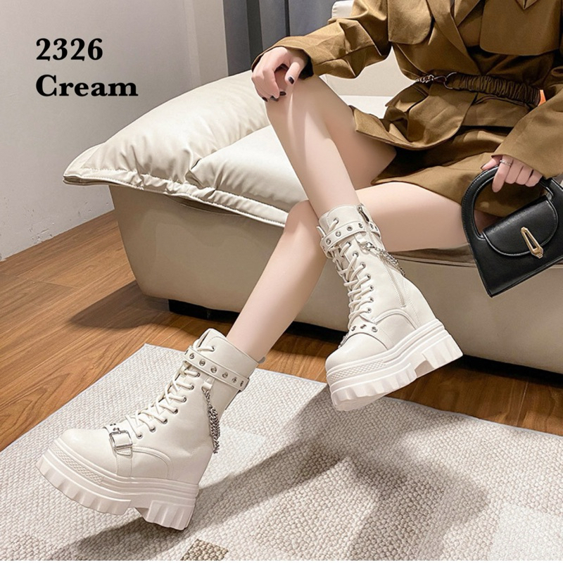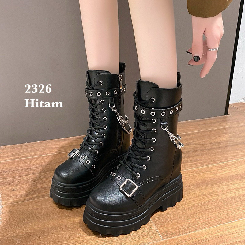 Sepatu Boots Wanita Impor Fashion Korea 2326 Wedges Kulit