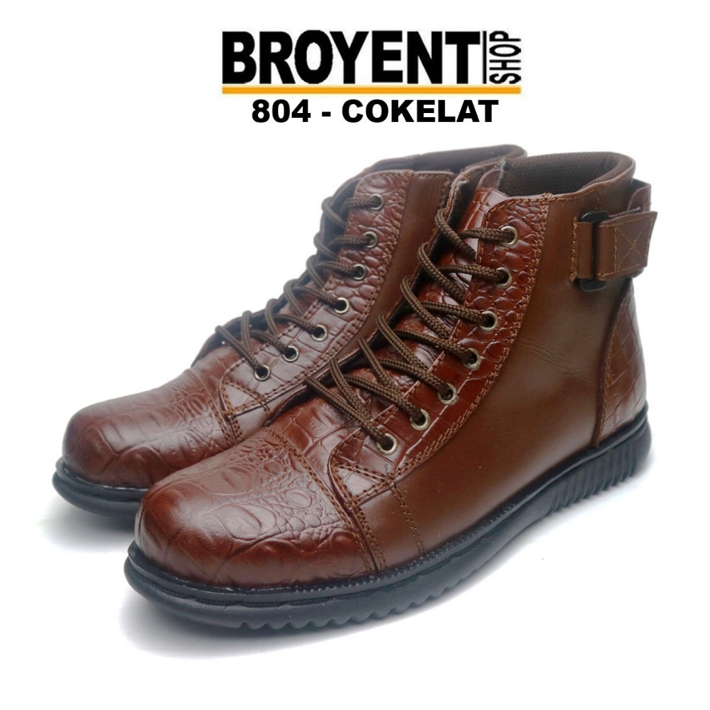 Sepatu Boots Pria Kulit Sapi Resleting Broyent 804