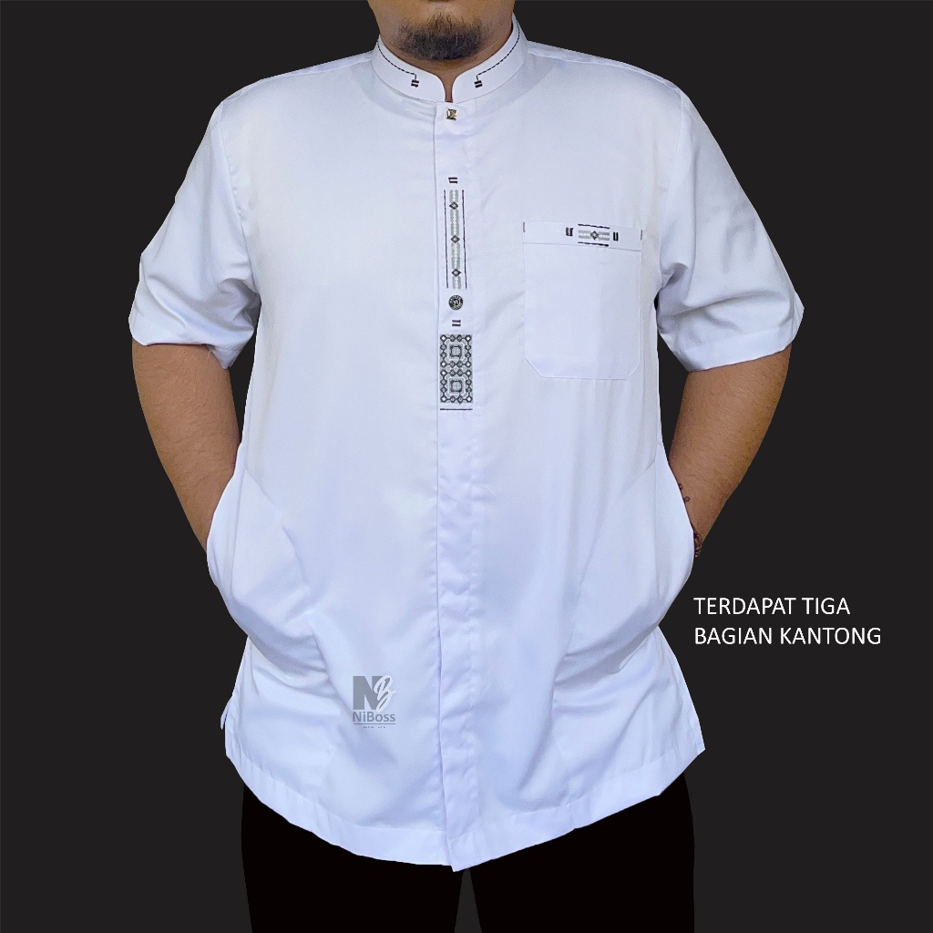 BAJU KOKO JUMBO LENGAN PENDEK PRIA KEMKO BIG SIZE DEWASA TAWQA PAKAIAN MUSLIM LAKI KATUN BORDIR