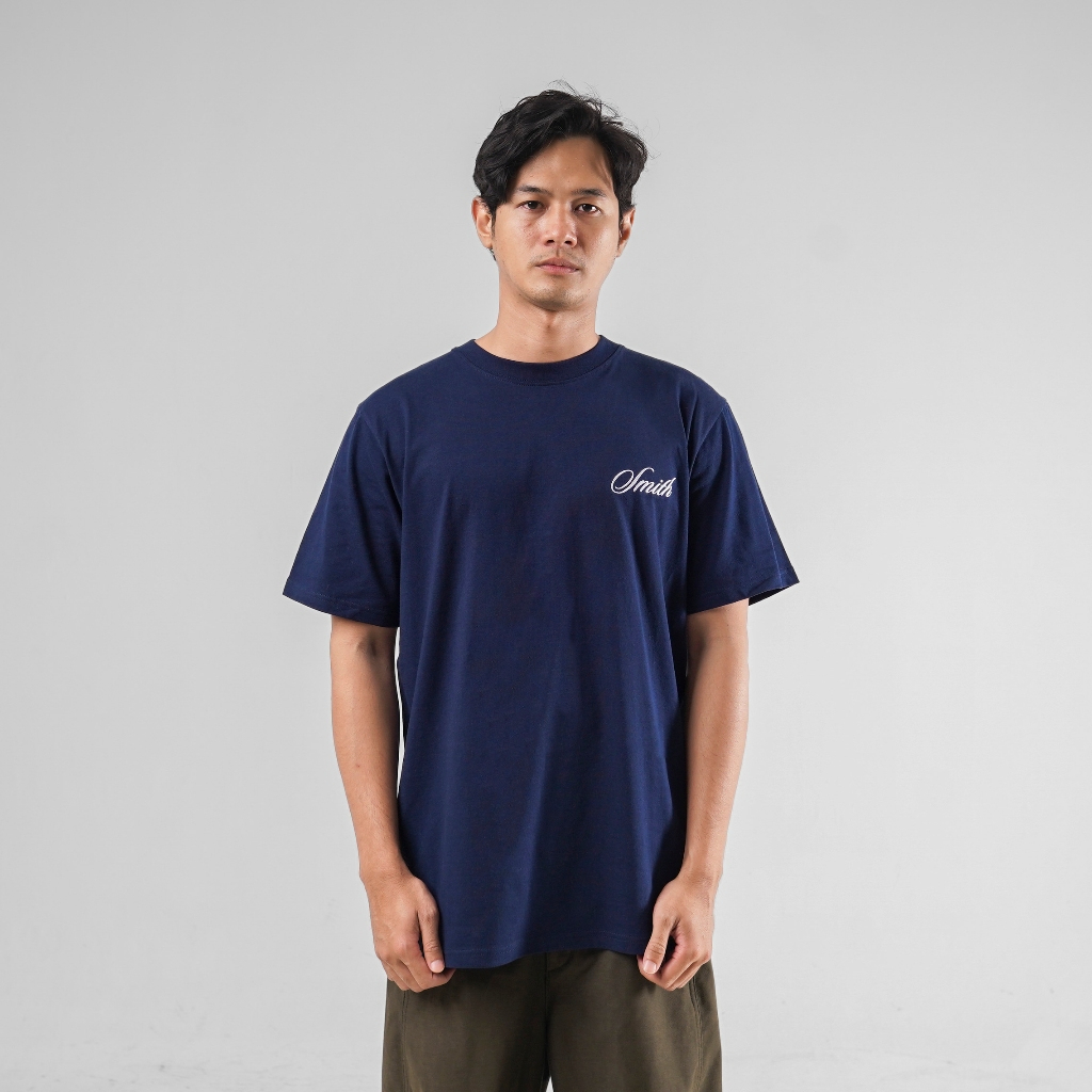 HOUSE OF SMITH ID - KAOS REGULER PRIA WANITA LENGAN PENDEK - LETTER EMBRO DARK BLUE - BAJU ORIGINAL OFFICIAL STORE MURAH