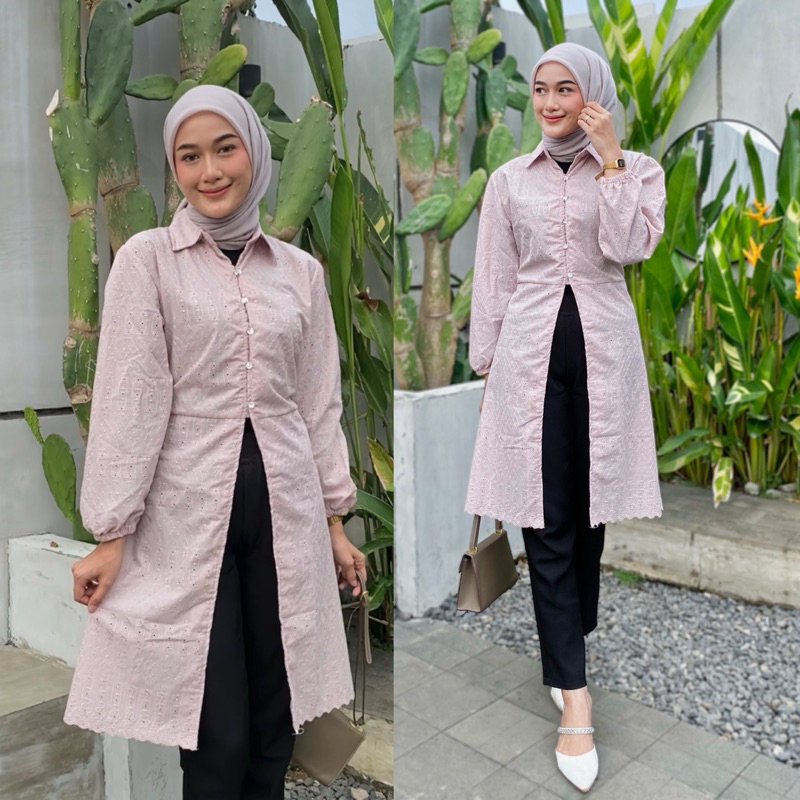ELEA TUNIK KATUN BORDIR BUNGA PUTIH PREMIUM LONGTUNIK KONDANGAN