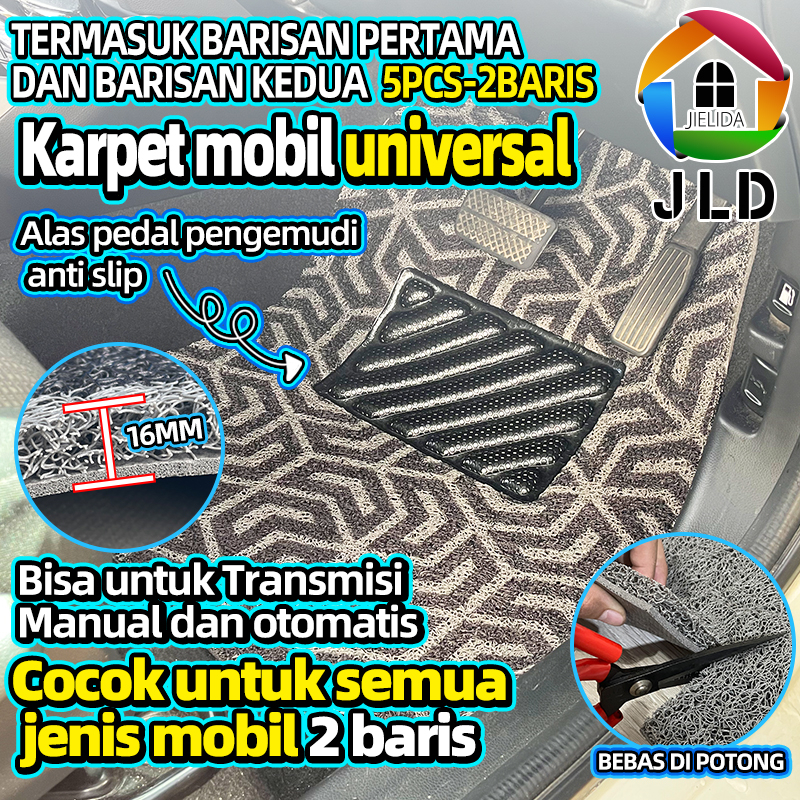 Jielida Karpet Mobil Mie Universal - 2 Baris / Karpet Coil Mat Aksesoris Mobil/5 Pcs 16Mm Semua Mobil Bisa Printing Full