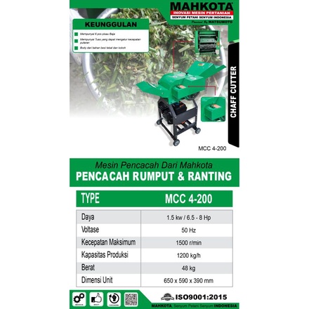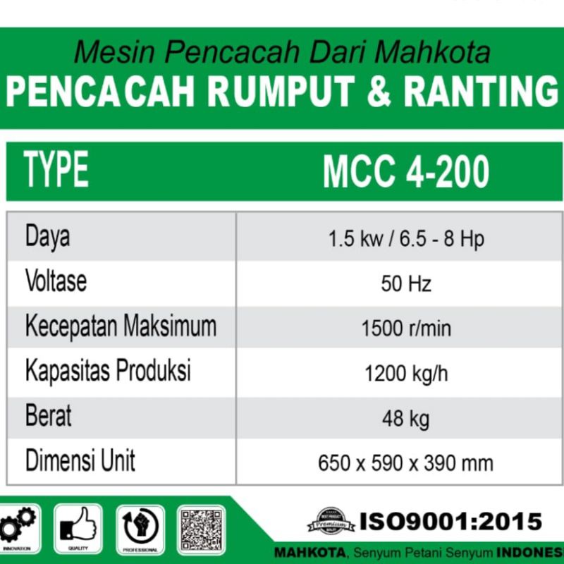 Mesin Pencacah Rumput Multifungsi Mahkota MCC 4-200 Cacah Ranting Batang Kompos Pakan Ternak MCC4-200