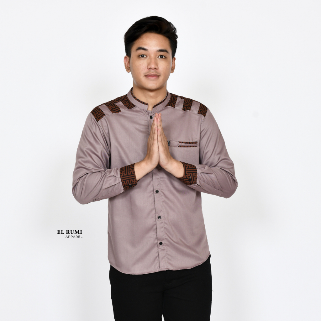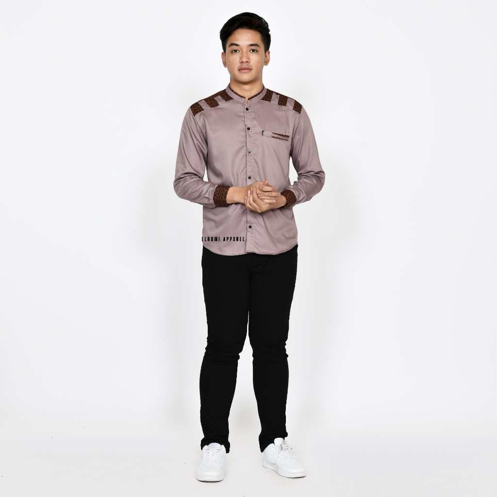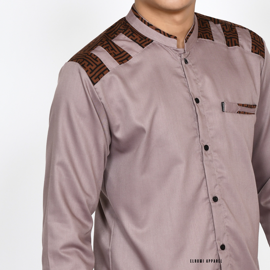 BAJU KOKO PRIA DEWASA ELRUMI LENGAN PANJANG WARNA LILAC KOMBINASI BATIK MOTIV PANSHER