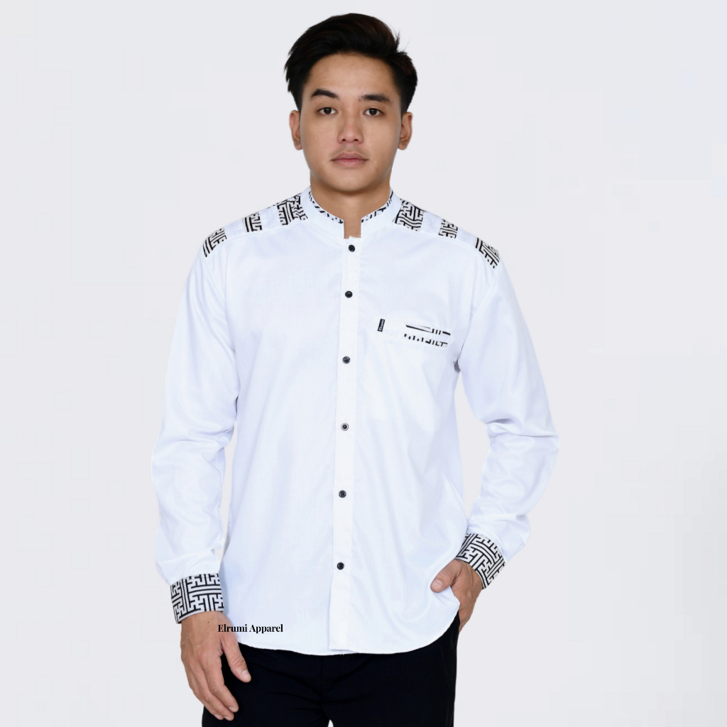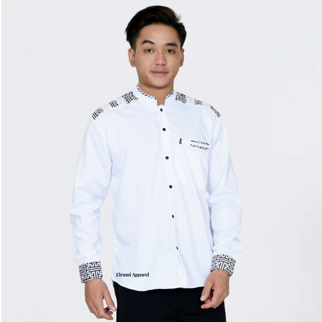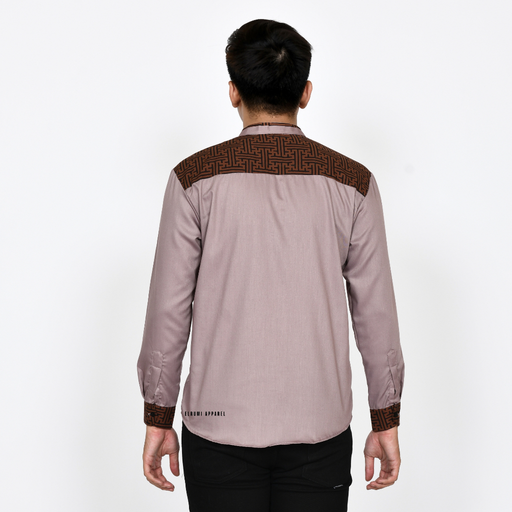 BAJU KOKO PRIA DEWASA ELRUMI LENGAN PANJANG WARNA LILAC KOMBINASI BATIK MOTIV PANSHER