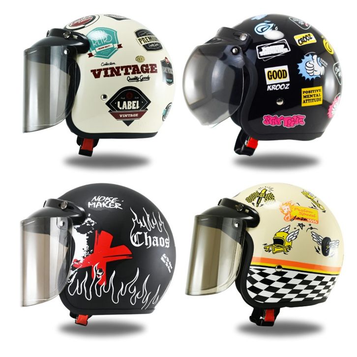 Helm Bogo Retro Motif One Piece Helem Pria Wanita SNI Helm motor Kaca Datar