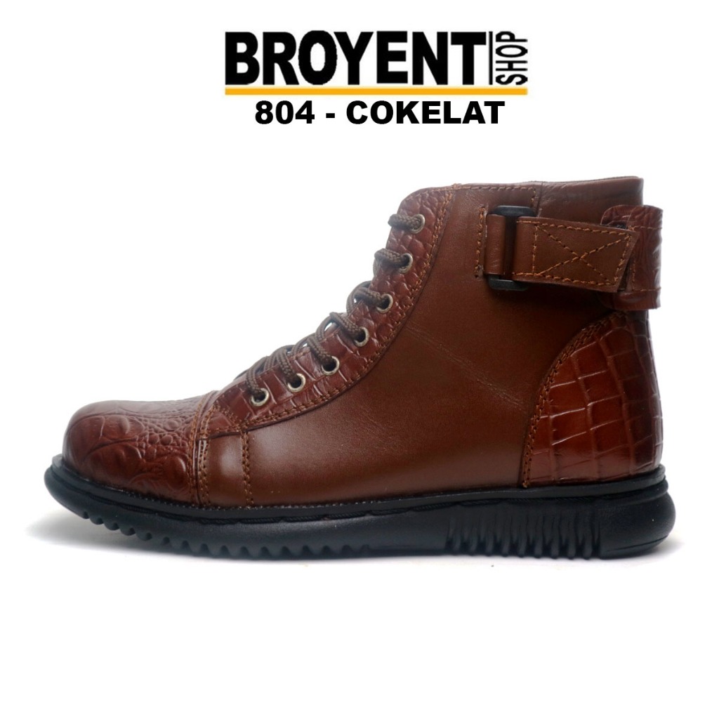 Sepatu Boots Pria Kulit Sapi Resleting Broyent 804