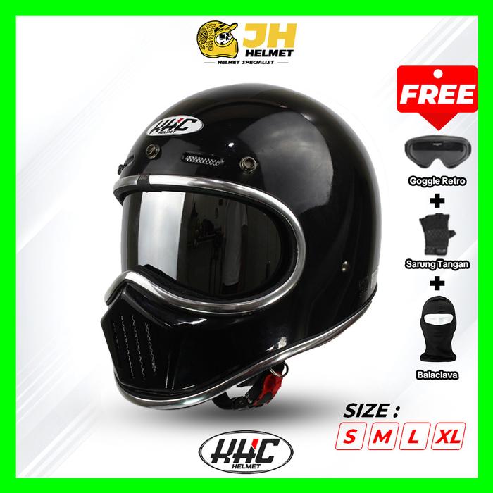 Helm Retro Cakil KHC List Chrome Inner Visor Free Goggle + Sarung Tangan | Helm Full Face | Jual Helm