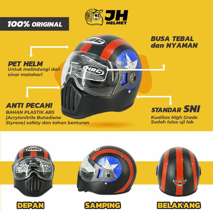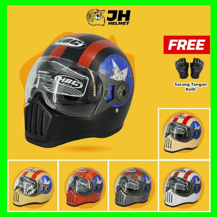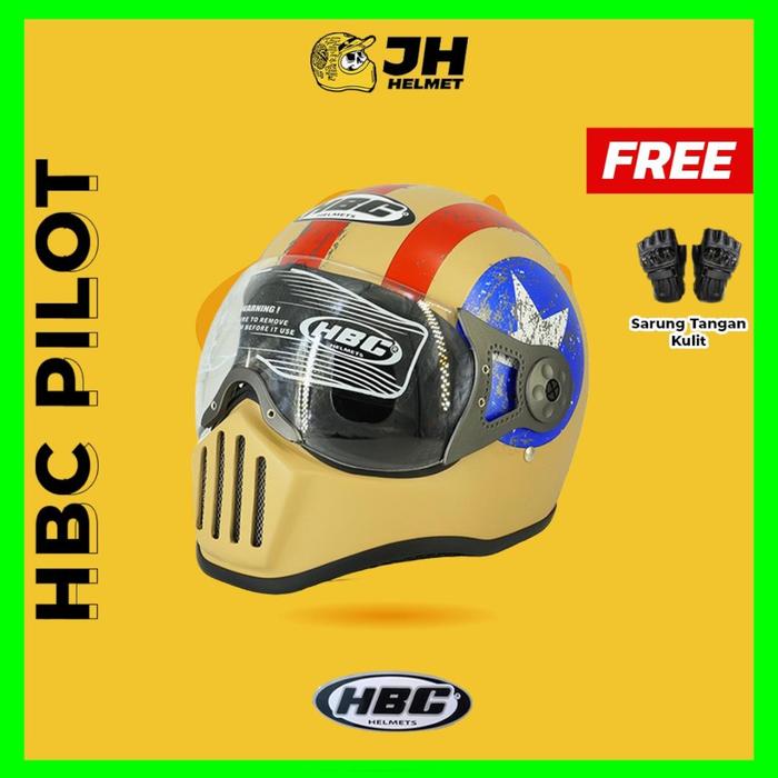 Helm Cakil HBC Pilot Visor Captain America + FREE Sarung Tangan Kulit | Motorcycle | Jual Helm