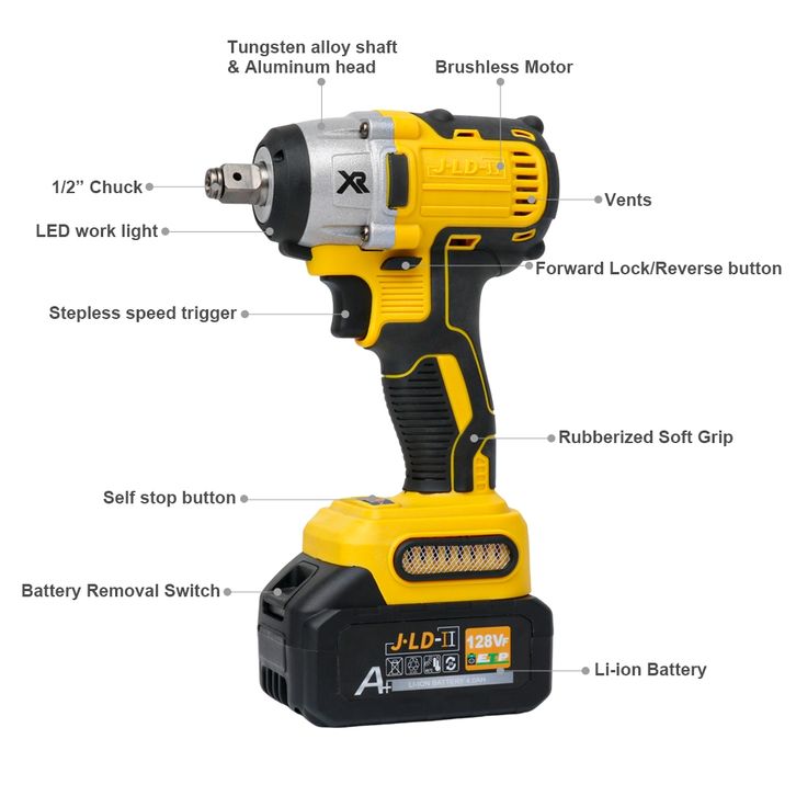 Mesin Bor Impact Baterai Brushless 450NM Mesin Bor Impact Wrench Cordless Bisa Bolak Balik Impact Baterai Torsi Besar B