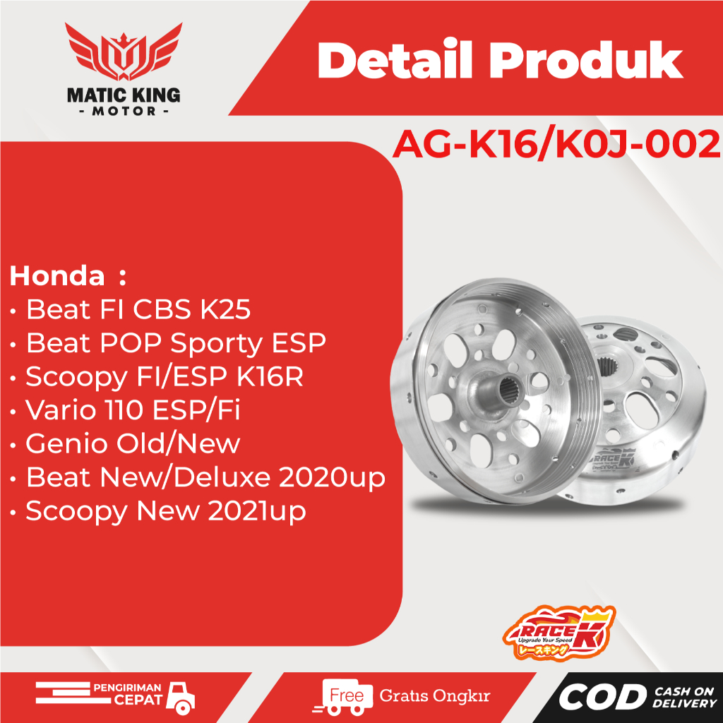 RACE K MANGKOK GANDA KOPLING KARTEL BEAT VARIO SCOOPY KARBU FI GENIO OLD NEW 110 ANTI GREDEK AG-K16/K0J-002