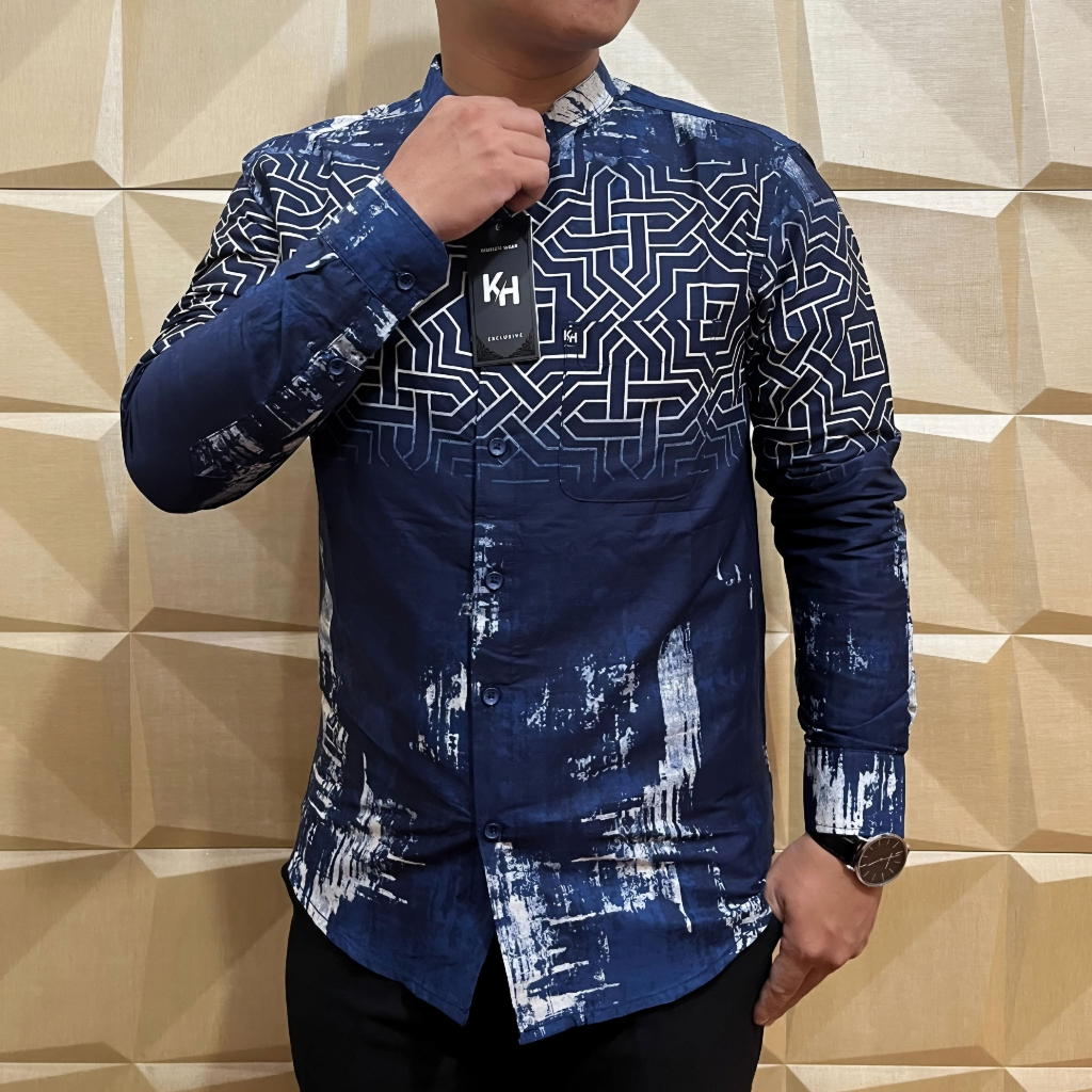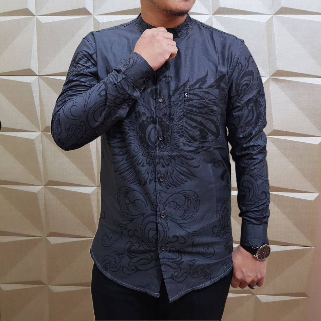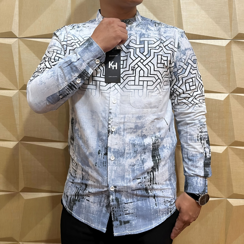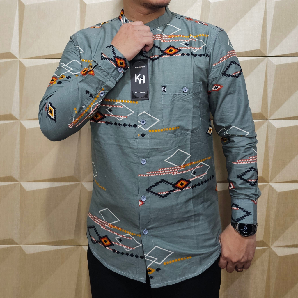 KEMKO KH 049 KEMEJA KOKO PRIA LENGAN PANJANG TERBARU 2025 KATUN PRINT GRAFIS KERAH SANGHAI ADA JUMBO