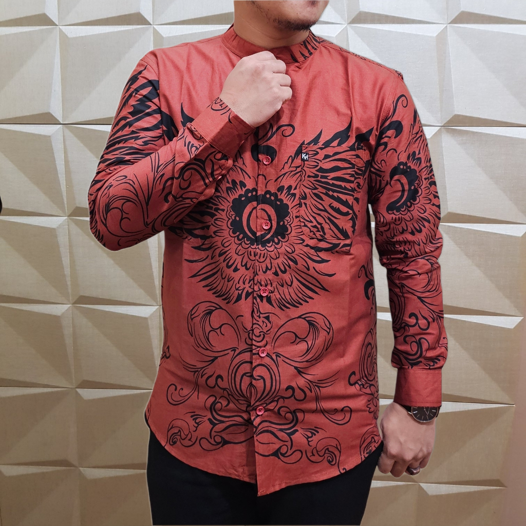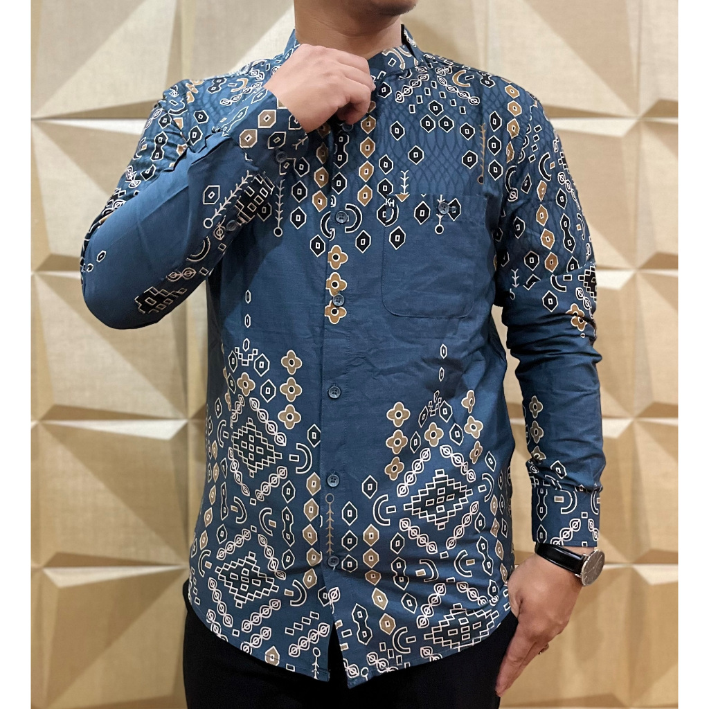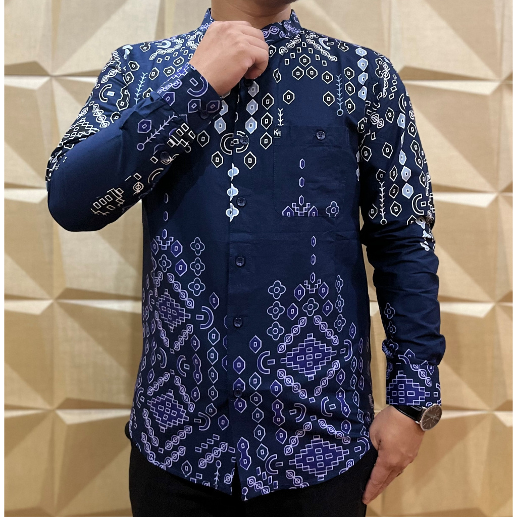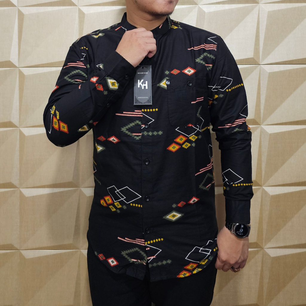 KEMKO KH 049 KEMEJA KOKO PRIA LENGAN PANJANG TERBARU 2025 KATUN PRINT GRAFIS KERAH SANGHAI ADA JUMBO