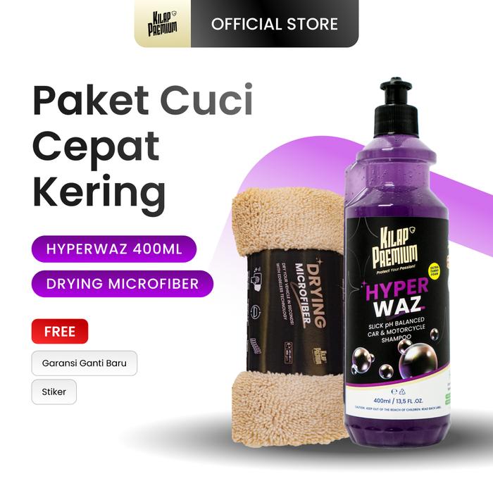 [Star]Hyperwaz + Drying Microfiber I Kilap Premium - Paket Cuci Motor Lengkap Untuk Body Glossy dan Doff Pada Mobil atau