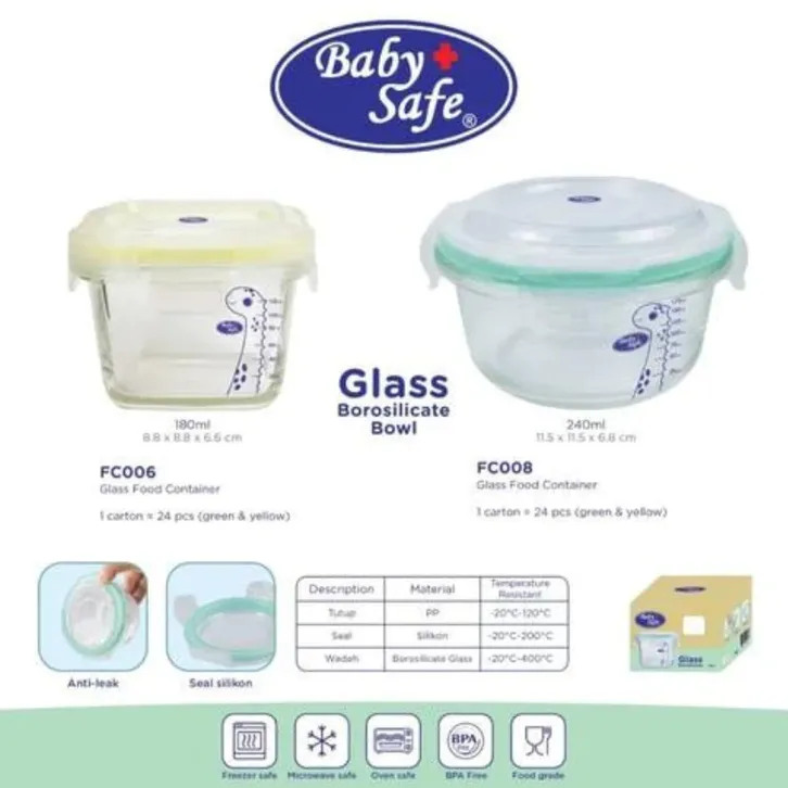 Baby Safe Food Container Wadah Kotak MPASI Bayi Tempat Makan Bayi FC002 FC003 FC006 FC008 Glass Container Kaca