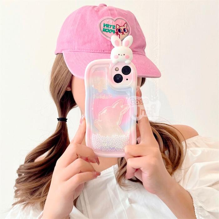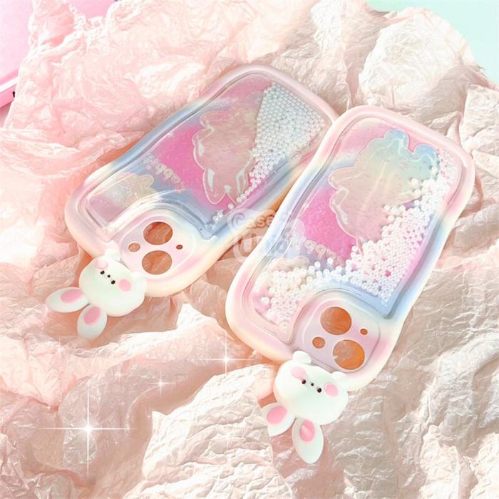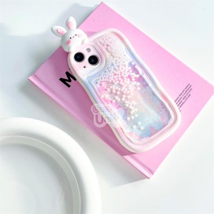CASEUNIQQ Case Water Glitter Pearl Bunny HP Silicone Casing HP Cover Hippers Compatible with iPhone Softcase