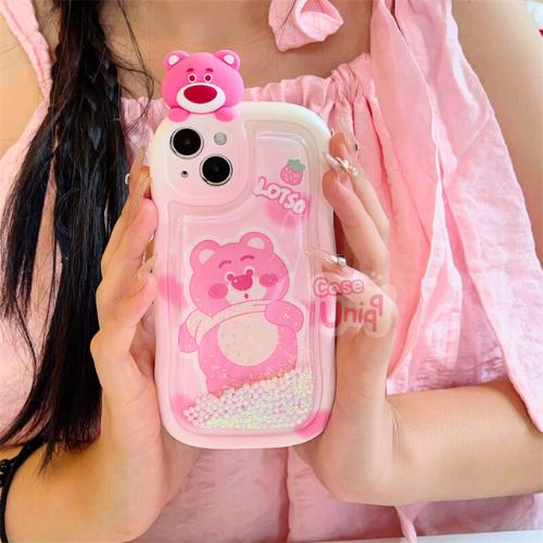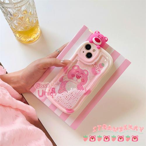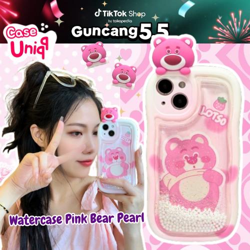 CASEUNIQQ Case Pinky Bear Watercase Pearl Glitter Casing HP iP Layar beruang hippers Compatible with iPhone Softcase