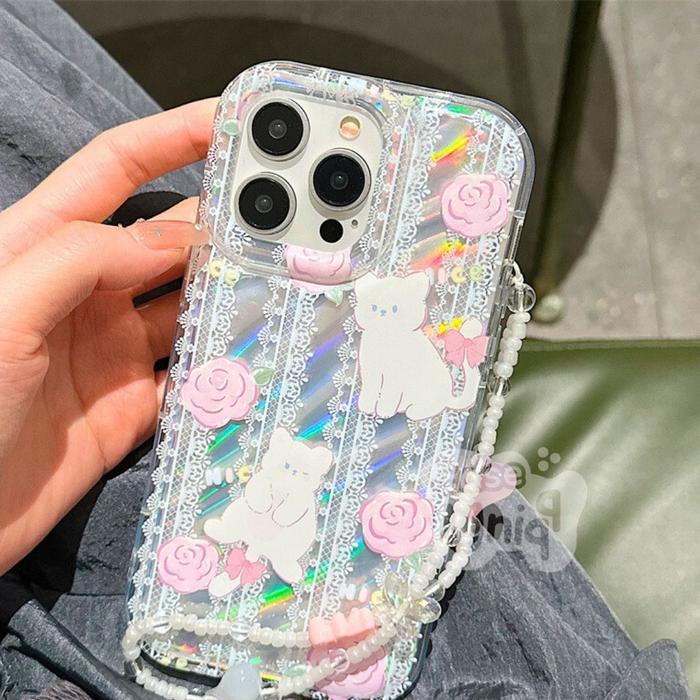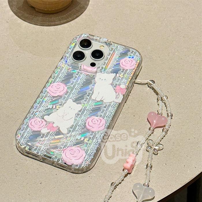 CASEUNIQQ Case + Strap Hologram Cat Casing HP Coquette Plus Phone Straps & Charms Compatible with iPhone