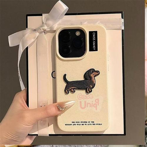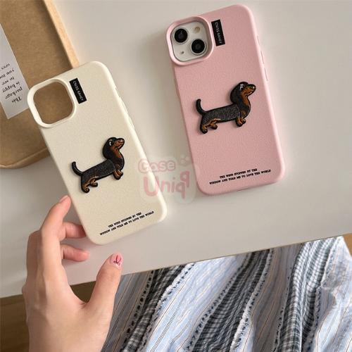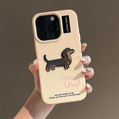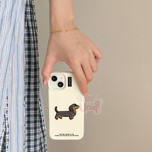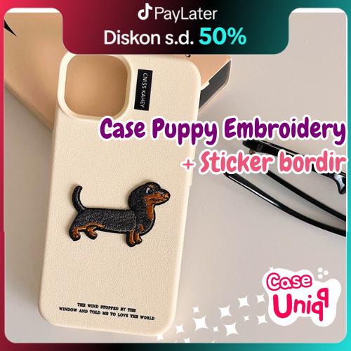 CASEUNIQQ Case + Stiker bordir Puppy Dachshund Embroidery Cream Softcase Casing HP compatible with iPhone 16 Plus Mini