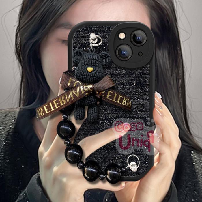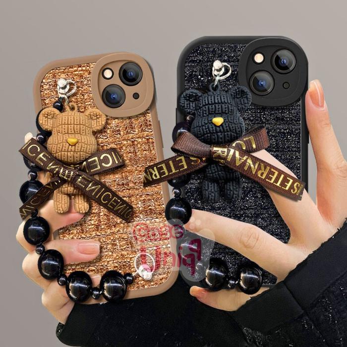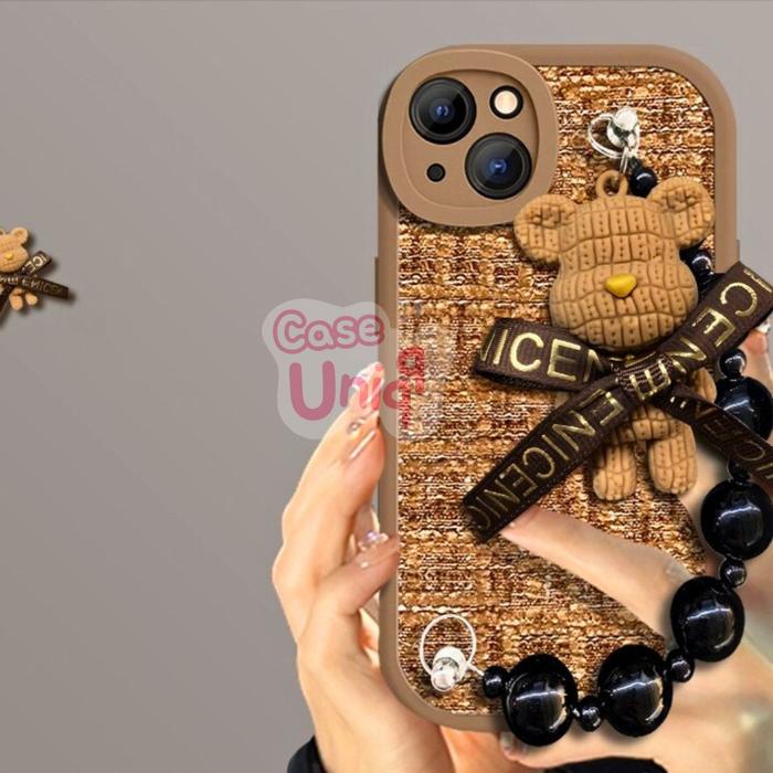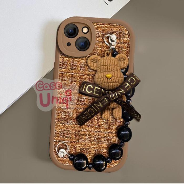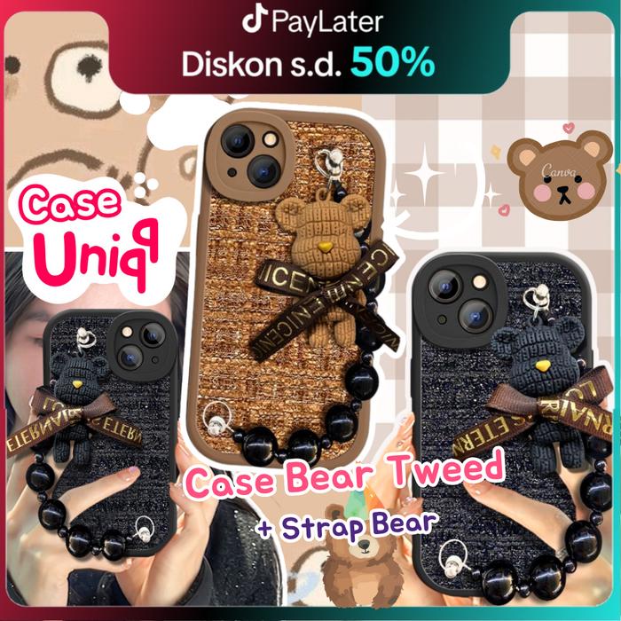 CASEUNIQQ Case Bear Tweed Case + Strap 3D Casing HP Softcase Phone Straps & Charms Compatible with iPhone