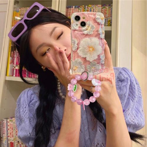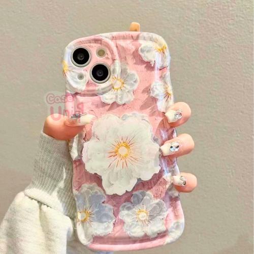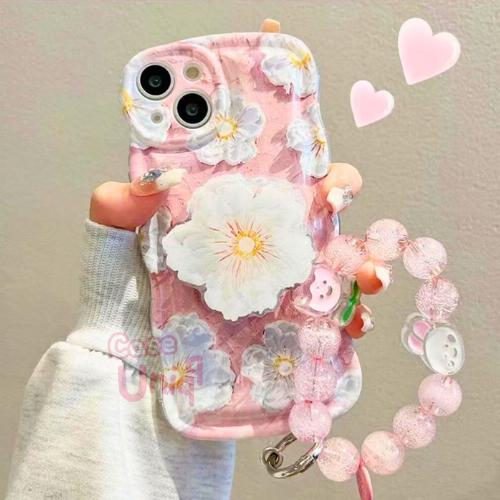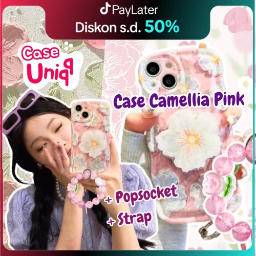 CASEUNIQQ Case + Popsocket + Strap Camellia Pink Peach Casing HP iP Set Softcase Compatible with iPhone