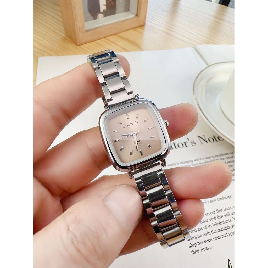 [Star] JAM TANGAN WANITA MURAH / JAM TANGAN WANITA ELEGAN MEWAH ANALOG DOUKOU STAINLESS STEEL ANTI KARAT KOTAK FASHION