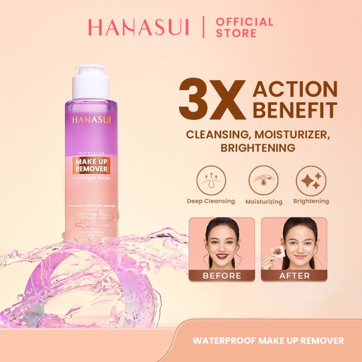 Hanasui Waterproof Make Up Remover + Collagen Water - Membersihkan Melembapkan Mencerahkan Menghapus Makeup