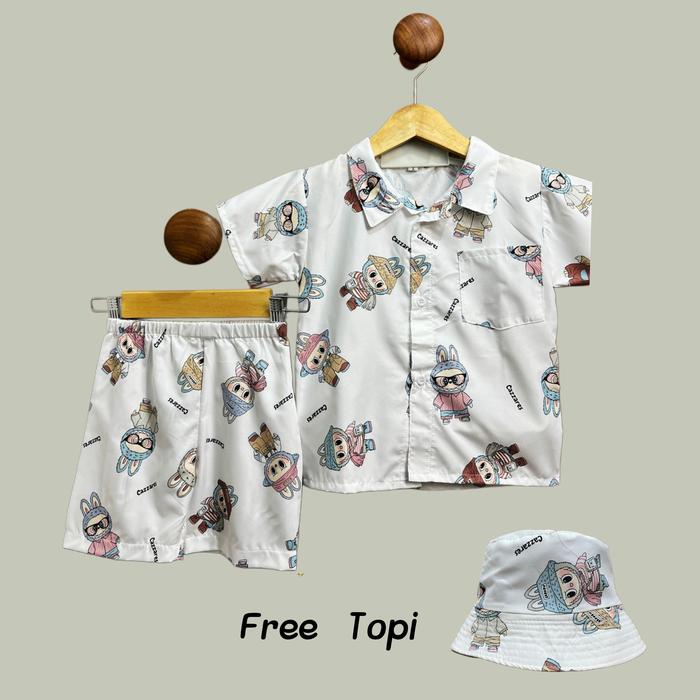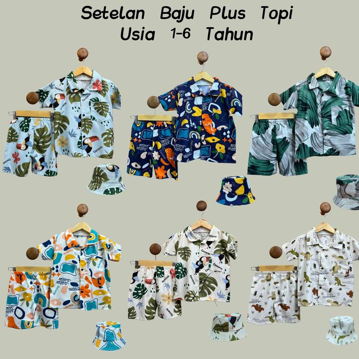 Setelan Baju Plus Topi Anak Laki-laki dan Perempuan Usia 1-6 Tahun - Motif 1 1-2 Thn