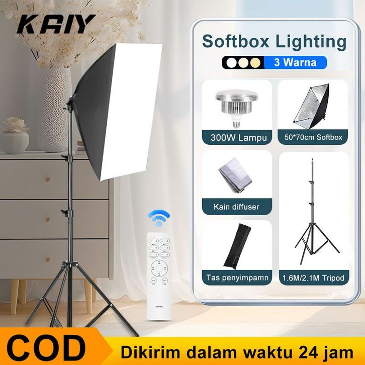 KAIY Softbox Lighting Kit 3 Warna 300W Lampu Kontent Kreator Live Streaming Studio+Ring Light Kit with Remote 3000K 500