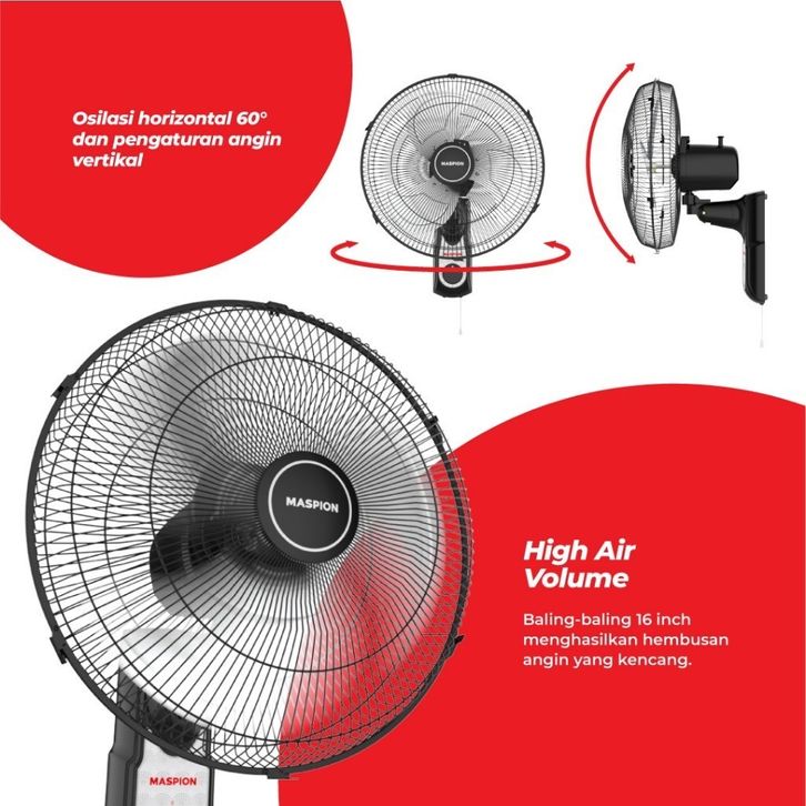 MASPION kipas angin dinding 16 inch MWF 1609 K, wall fan maspion 1809 W baling besi