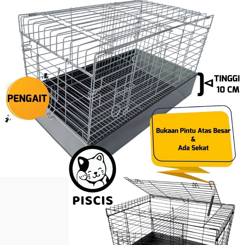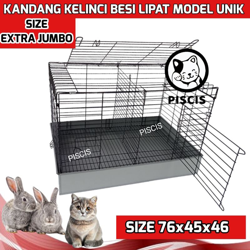 KANDANG KELINCI KUCING BESI LIPAT MURAH EXTRA JUMBO 76x45x46 Hitam Galvanis