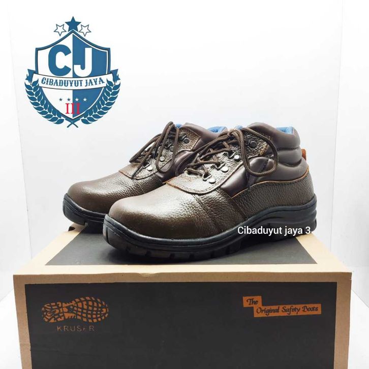 SEPATU SAFETY KRUSER UJUNG BESI BOOTS SAVETY SEPTI SEFTY SHOES PENDEK KULIT ASLI BROWN/COKLAT