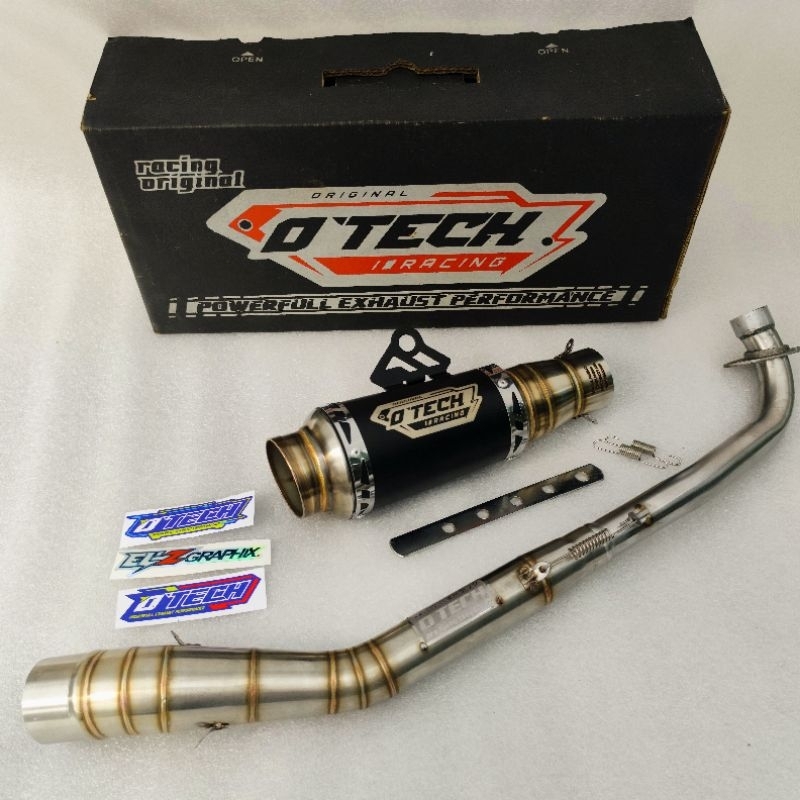 Knalpot Original Otech Racing Mp 4 Blackdhof Fullset Leheran Kolong/samping All Motor Bebek Supra Vega Jupiter Karisma