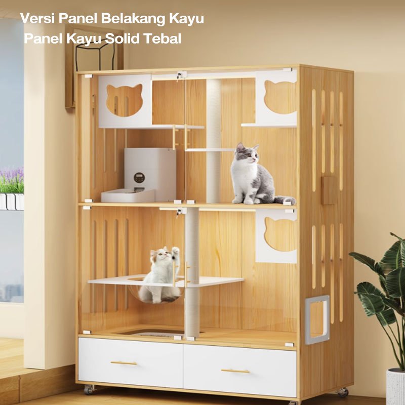 L&Q Rumah Kucing/ Kandang Kucing Produk Kayu Kaca Aman 360 Derajat Tahan Air dan Lembab Kandang Kucing