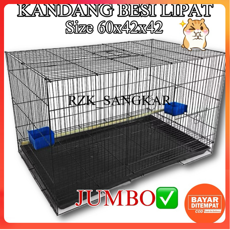 RZK- KANDANG KUCING UMBARAN BURUNG SIZE L 60x40x40 FREE 2 TEMPAT MAKAN CEPUK Kandang Besi Lipat kandang kelinci kandang hamster kandang musang Jumbo Kandang Lipat Size 60x42x42