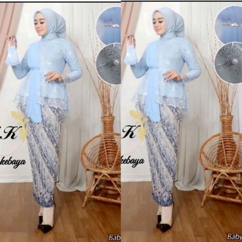 sk- baju kebaya lesty couple baby blue / kebaya lamaran tunangan / kebaya untuk seragam keluarga