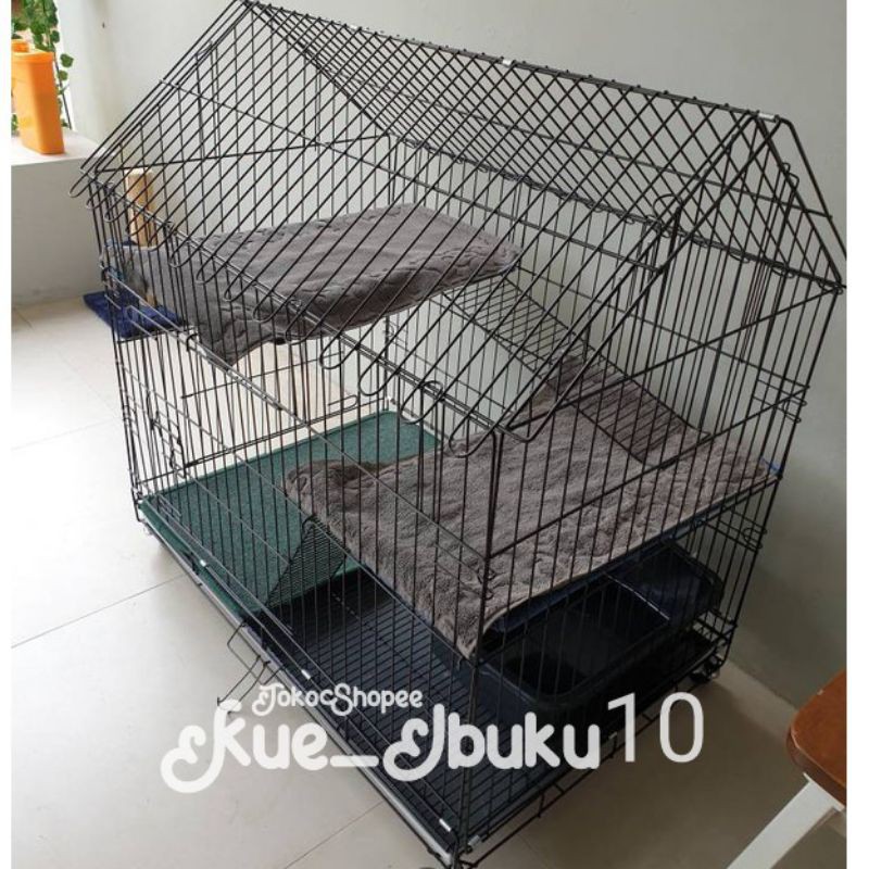Kandang Kucing 2 Tingkat Atap Rumah Musang Hamster Kelinci Tupai Bajing Iguana Garangan Anjing Hewan Peliharaan Sangkar