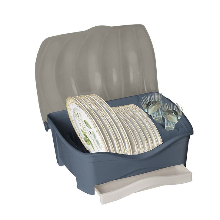 Rovega Rak Piring Plastik Premium Food Grade Dish Rack Shella Dark Grey NEW COLOR SDR-800DG
