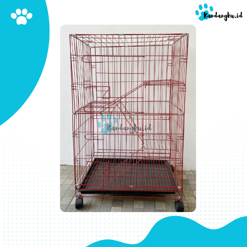 Kandang Besi Lipat 3 tingkat size L + roda / kandang kucing/ kandang Kelinci / kandang anjing - Kandangku.id