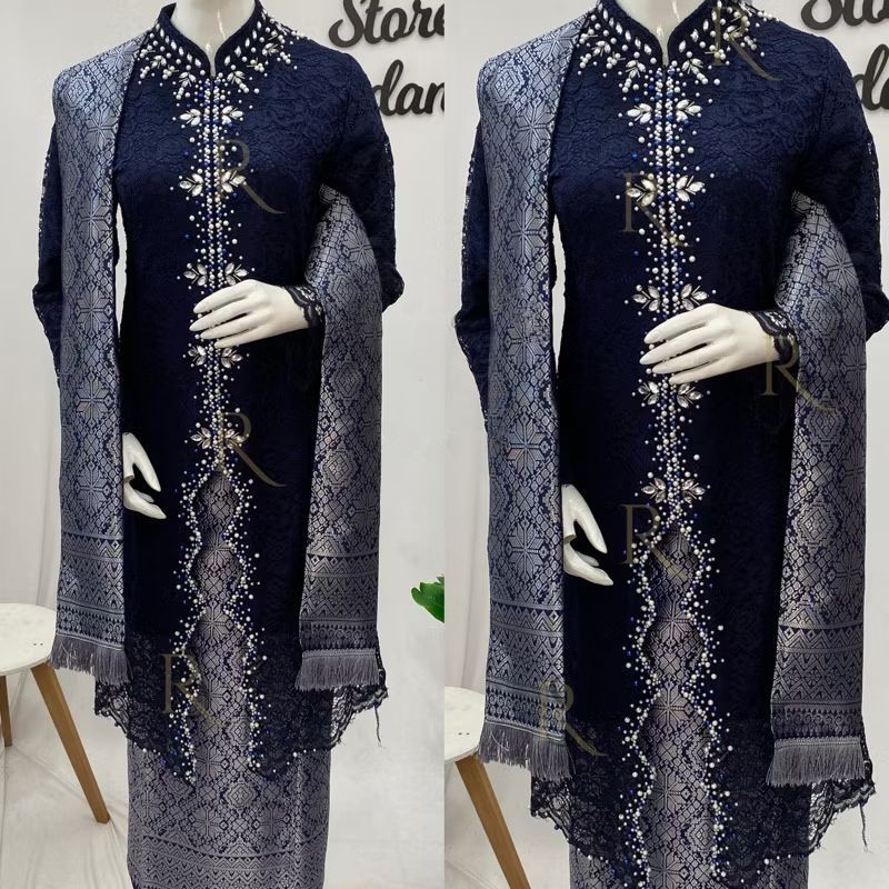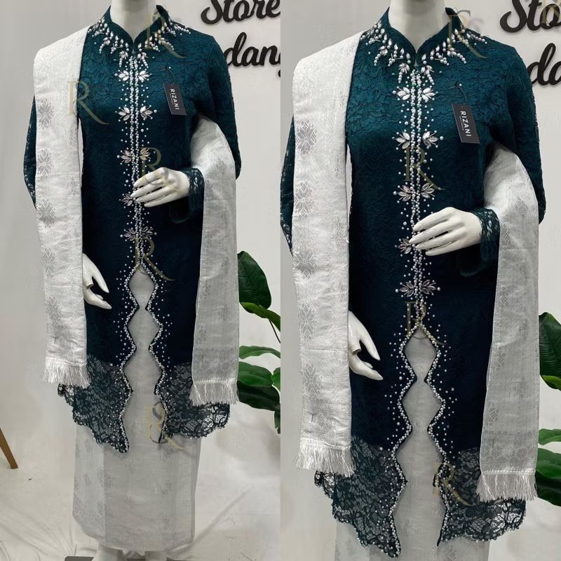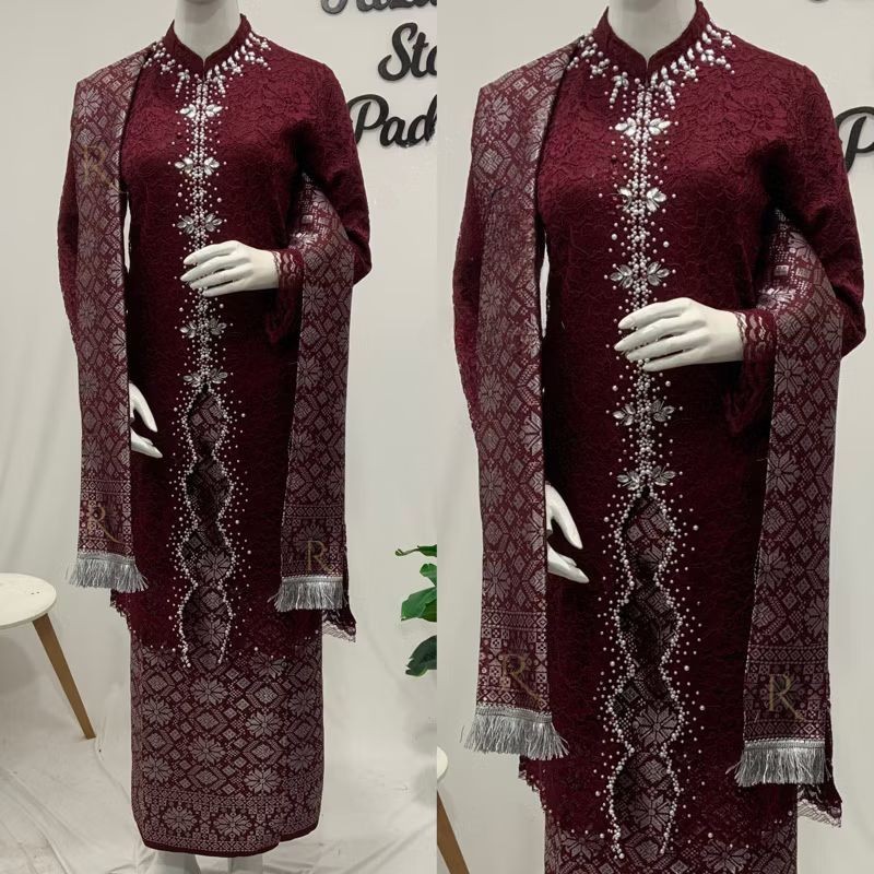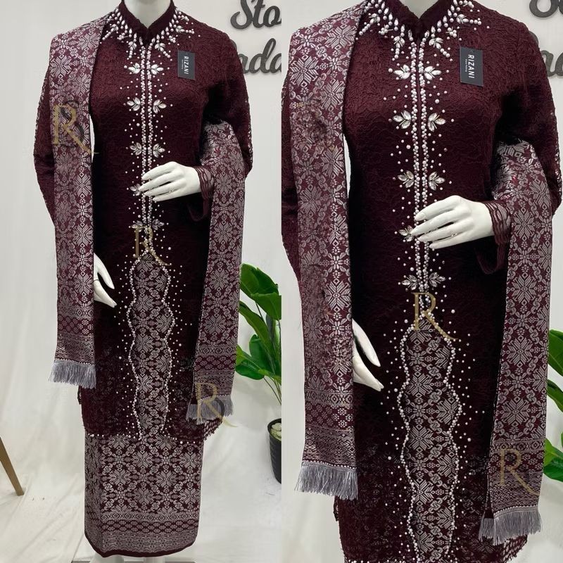 New Desain Stelan Kebaya Brokat Modern Tunik Busui Payet Zigzag Terbaru Mewah Elegan Set Songket Selendang Pesta Wisuda