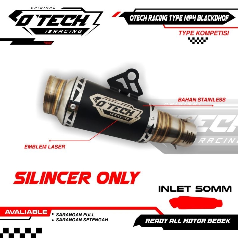 Knalpot Original Otech Racing Type Mp4 Blackdhof Silincer Only Inlet 50mm