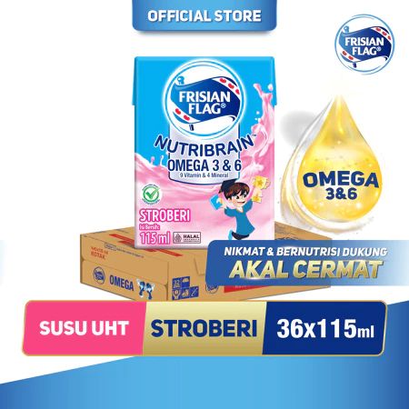 Frisian Flag Omega Susu UHT Rasa Plain Strawbery Coklat 115Ml [36 Pcs]