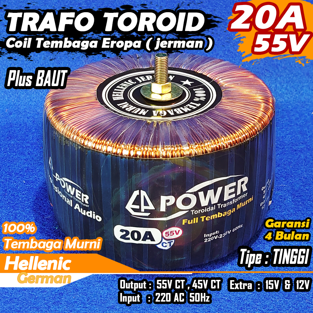Trafo Toroid 20A CT 55V 45V (MURNI) Full Tembaga Murni Hellenic Jerman