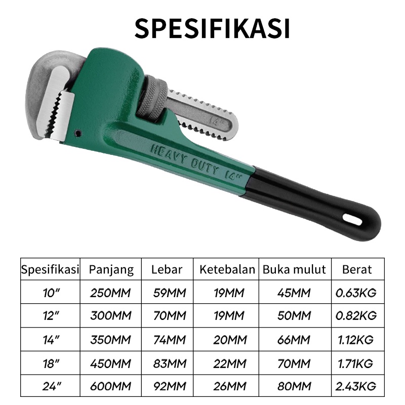 Isku Kunci Pipa Pipe Wrench Kunci Ledeng 10" 12" 14" 18" 24" Inch