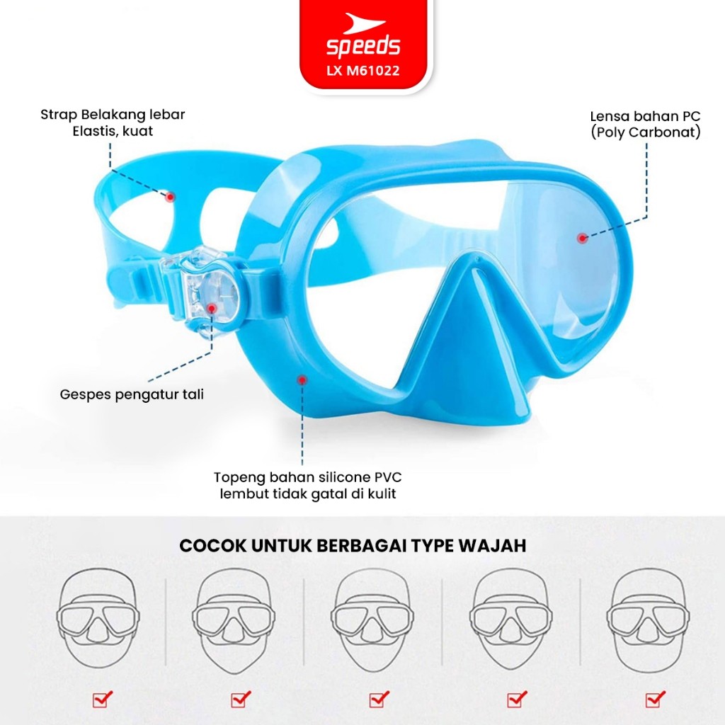 SPEEDS Peralatan Selam Lensa Jernih Kacamata Menyelam Anak Remaja Snorkel Diving Mask Scuba Mask M61022