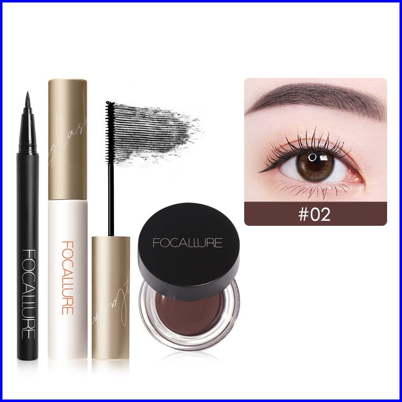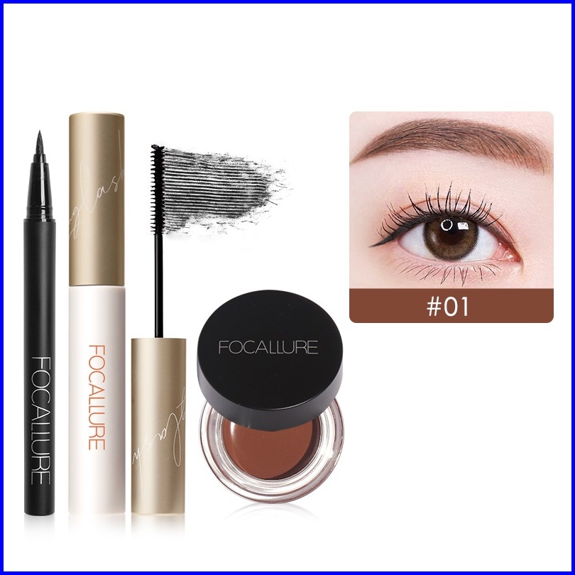 Focallure 3pcs Set Eyeliner Mascara Eyebrow Cream