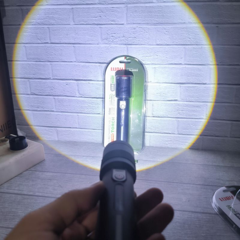 LUBY L-AL8002 LAMPU SENTER TANGAN ZOOM 50W HAND LAMP RECHARGEABLE 50 WATT SUPER TERANG BAGUS KUALITAS TERJAMIN