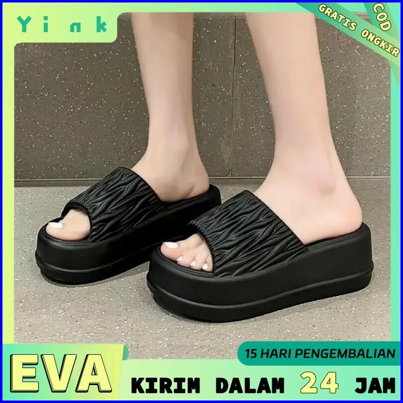 Yink Sandal Wanita Terbaru Wedges Tinggi 5cm Korea Premium Fashion Eva Sendal Karet Wanita Jelly Kekinian Casual Tebal O