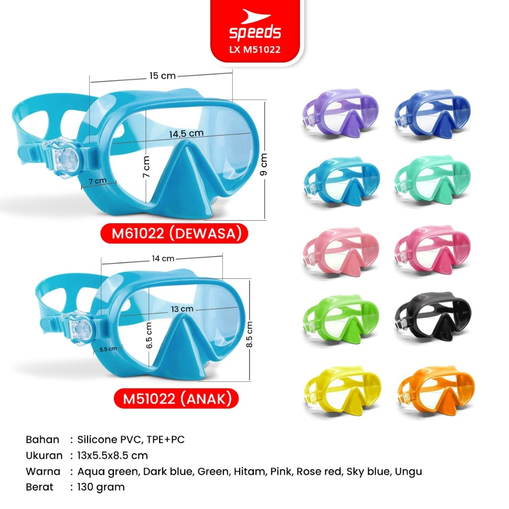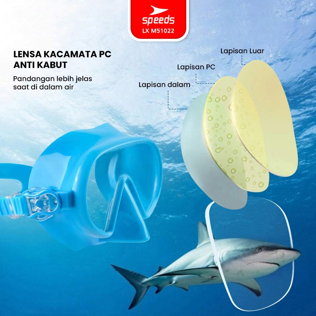 SPEEDS Peralatan Menyelam Anak Remaja Diving Mask Kacamata Selam Snorkel Mask Scuba Mask M51022